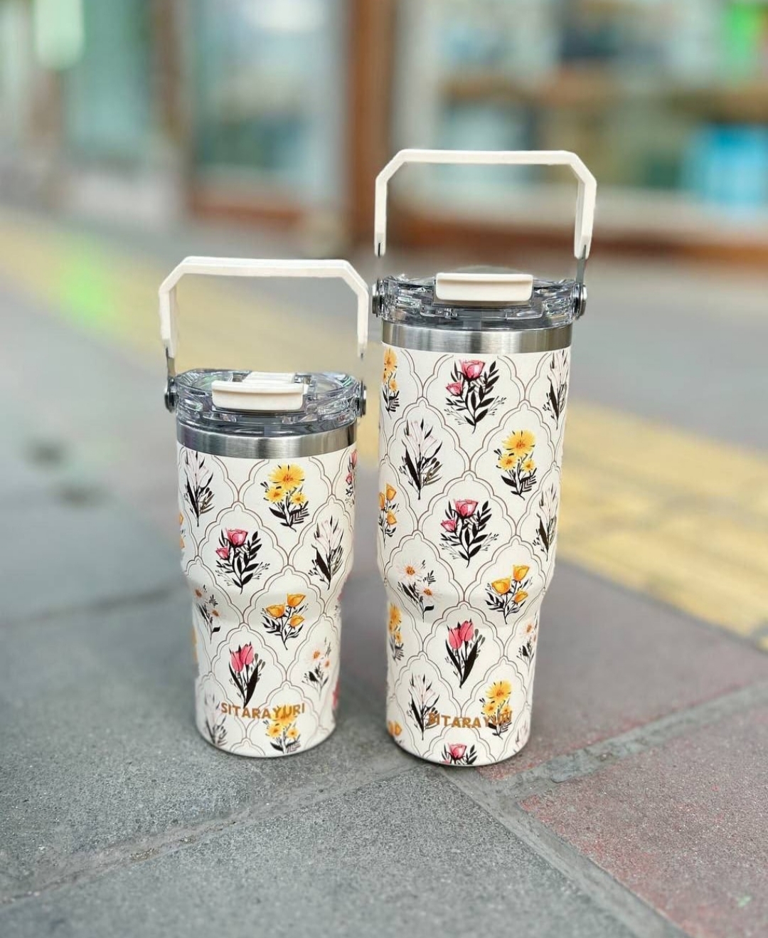 لیوان استیل دوجداره طرحدار با طراحی گلهای ظریف و رنگبندی پاستلی، انتخابی شیک و کاربردی برای استفاده روزمره، محل کار، سفر و هدیه دادن است. این ماگ فلاسکی با بدنه استیل ضدزنگ و درب قفلدار، نوشیدنیهای گرم و سرد را برای ساعتها در دمای مطلوب نگه میدارد. وجود دستهی محکم حمل آن را آسان کرده و طراحی خاص آن، جلوهای زیبا به استایل شما میبخشد.